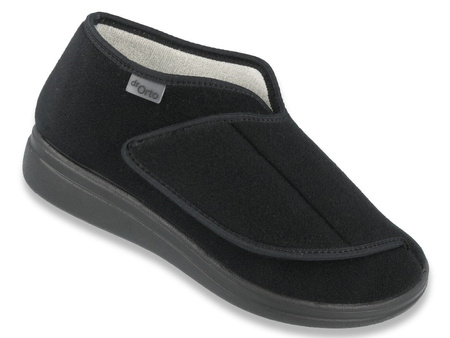 Profilaktyczne obuwie z kolekcji Dr Orto o bardzo dużej regulacji tęgości z wygodnym i praktycznym zapięciem na rzep, które sprawia, że but można dodatkowo wyregulować. Obuwie posiada oddychającą podeszwę oraz antybakteryjną wyściółkę Silber z aktywnymi jonami srebra, która polecana jest dla osób ze stopą cukrzycową. Ze względu na łatwość zakładania buty Dr Orto są idealne dla osób niepełnosprawnych fizycznie, a także po urazach i po korekcie deformacji stóp i palców.
