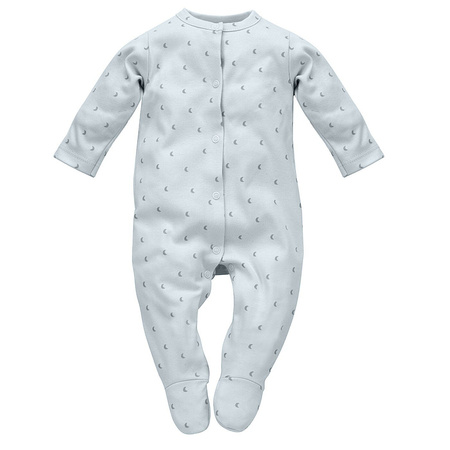 Pajacyk niemowlęcy w kolekcji Hello! uszyty został z 100% miękkiej bawełny w kolorze niebieskim. Materiał ozdobiony jest subtelnym printem niebieskich księżyców. Nadruk wykonano bezpieczną metodą farb wodnych, odpornych na codzienne użytkowanie i pranie. Pajacyk to niezbędny element wyprawki dla noworodka. W kroku wszyty został specjalny klin, który pomieści pieluszkę i zapewni maluszkowi swobodę ruchów podczas codziennych aktywności. Dodatkowo nad piętkami umieszczono gumki, które uniemożliwiają wysuwanie się stópek dziecka z nogawek. Aby ułatwić początkującym rodzicom przewijanie i ubieranie maluszka, pajacyk zapinany jest na całej długości na wygodne, bezniklowe napki. Pajacyk sprawdzi się jako codzienne ubranko, a w nocy można go założyć zamiast piżamki. Pajacyk występuje również w kolorze różowym i écru. Wykonany został w Polsce z delikatnych i starannie przetestowanych materiałów oraz posiada certyfikat „Bezpieczny dla dziecka".Podmiot odpowiedzialny za ten produkt na terenie UE