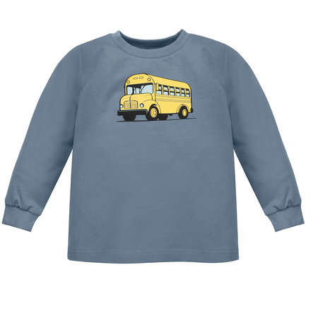 Bluzka z długim rękawem, w kolekcji Fun Time uszyta została z miękkiej bawełny z dodatkiem elastanu, w stalowym odcieniu Błękitu. Dodatkowo ozdobiona jest chłopięcym nadrukiem wesołego, szkolnego autobusu. Dla wygody ubierania, w rozmiarach 74-86 zapinana jest na wygodne, bezniklowe napki a dekolt bluzki wykończony jest elastycznym ściągaczem, który sprawia, że zakładanie bluzki przez głowę jest naprawdę łatwe. Bluzka z długim rękawem z kolekcji Fun Time to absolutny niezbędnik w każdej garderobie niemowlaka i przedszkolaka. Podobnie jak wszystkie ubranka Pinokio, bluzeczka wyprodukowana jest w Polsce.