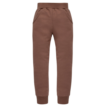 Dziecięce spodnie z kolekcji Safari uszyte są ze 100% bawełnianej dzianiny w kolorze praktycznego brązu. Dzięki praktycznej gumce wszytej w pasie, ubranko pozostaje na swoim miejscu w czasie codziennej zabawy. Dodatkowo po bokach znajdują się dwie pojemne kieszonki, które pomieszczą dziecięce skarby. Nogawki spodni wykończyliśmy efektownym ściągaczem, który dodatkowo utrzymuje ubranko w odpowiednim miejscu. Spodnie mają luźny fason, który gwarantuje dziecku swobodę ruchów. Nasze spodnie z kolekcji Safari stworzą idealny zestaw z bluzą długim rękawem. Spodenki wyprodukowane są w Polsce, warto o nich pamiętać kompletując wyprawkę do przedszkola lub żłobka. W kolekcji Safari występują również w kolorze beżowym.