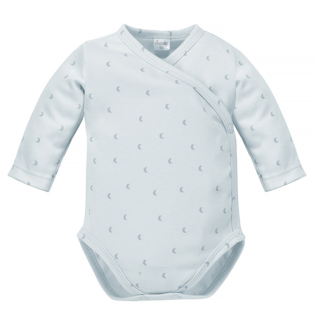 Rozpinane body niemowlęce z długim rękawem, kopertowe, w kolekcji Hello uszyte zostało w 100% z delikatnej bawełny w kolorze niebieskim, ozdobionej nadrukiem w księżyce. Kopertowy krój zapinany na bezpieczne bezniklowe napki sprawia, że ubieranie i przewijanie maluszka jest naprawdę łatwe. Ubranko będzie świetnie wyglądać z półśpiochami z tej samej kolekcji. Body niemowlęce to niezbędny element wyprawki noworodka. Wyprodukowane jest w Polsce. W kolekcji Hello występuje również w kolorze ecru i różowym.Potrzebujesz pomocy? Masz pytania?Zadaj pytanie a my odpowiemy niezwłocznie, najciekawsze pytania i odpowiedzi publikując dla innych.